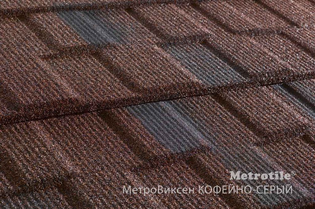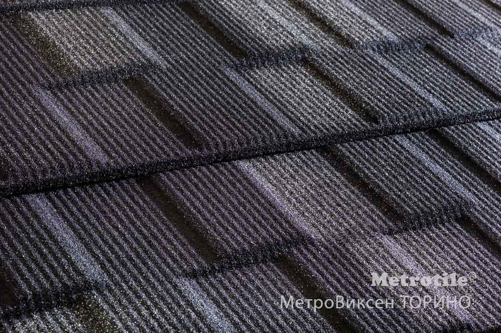Профиль MetroViksen выделяет каждый визуальный "гонт" как при помощи игры цвета каменной посыпки, так и объемом профиля, поднимающегося на 30 мм.