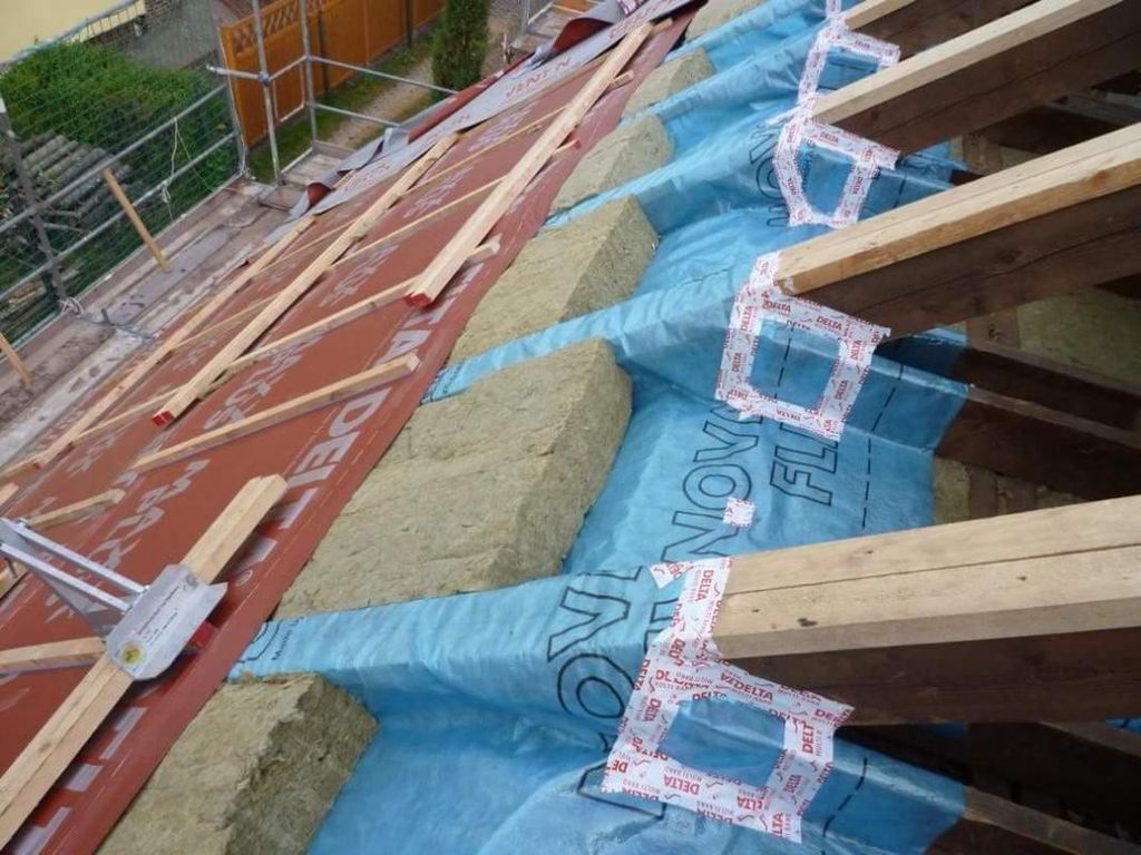 В завершении уложите утеплитель и сверху диффузионную мембрану DELTA®. Оптимальная комбинация защиты крыши после ремонта или реконструкции обеспечивается в сочетании с диффузионной мембраной DELTA®-MAXX PLUS/DELTA®-MAXX.